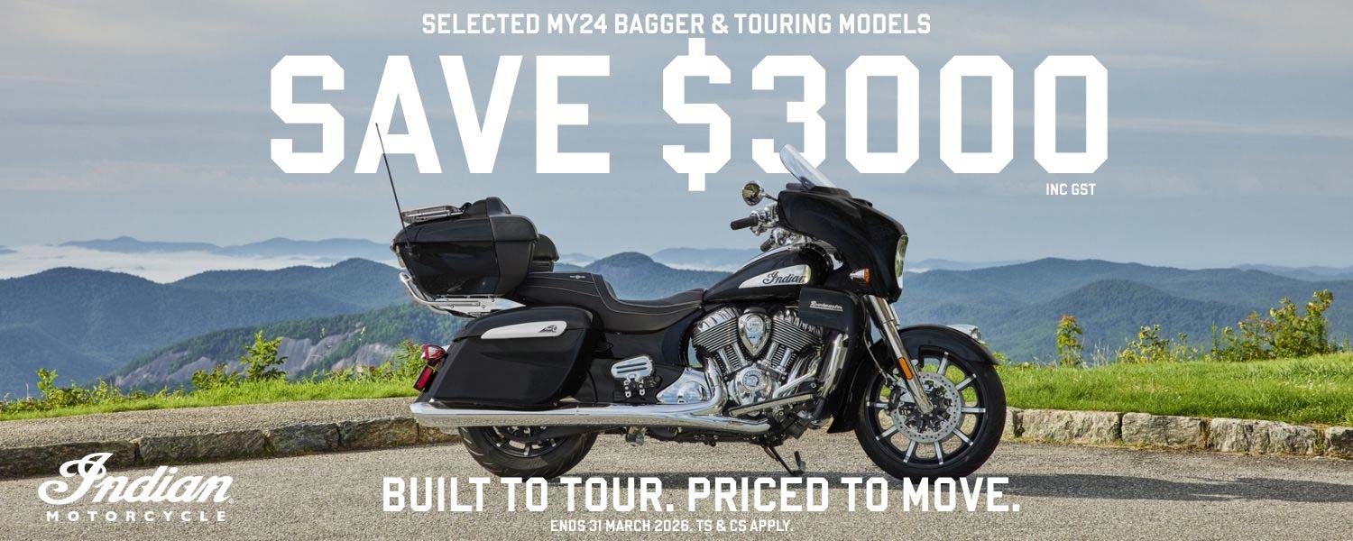 16/12/2025 Built to Tour. Priced to Move.Save $3,000 Inc GST on selected MY24 Bagger and Touring models · Ends 31 March 2026 T&Cs apply.