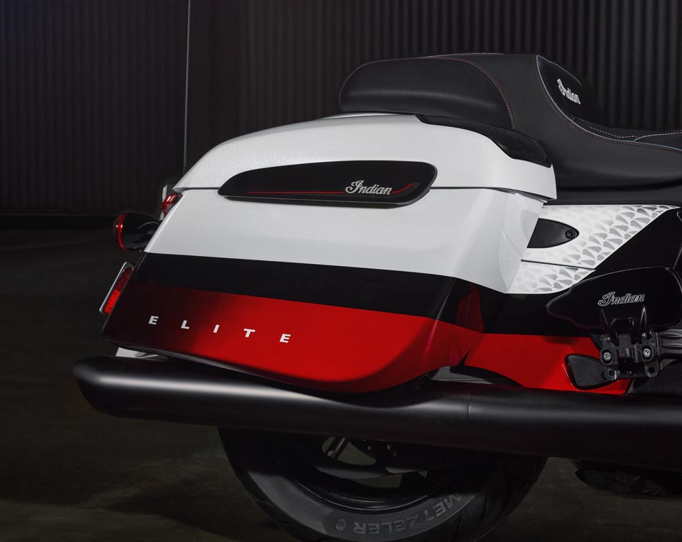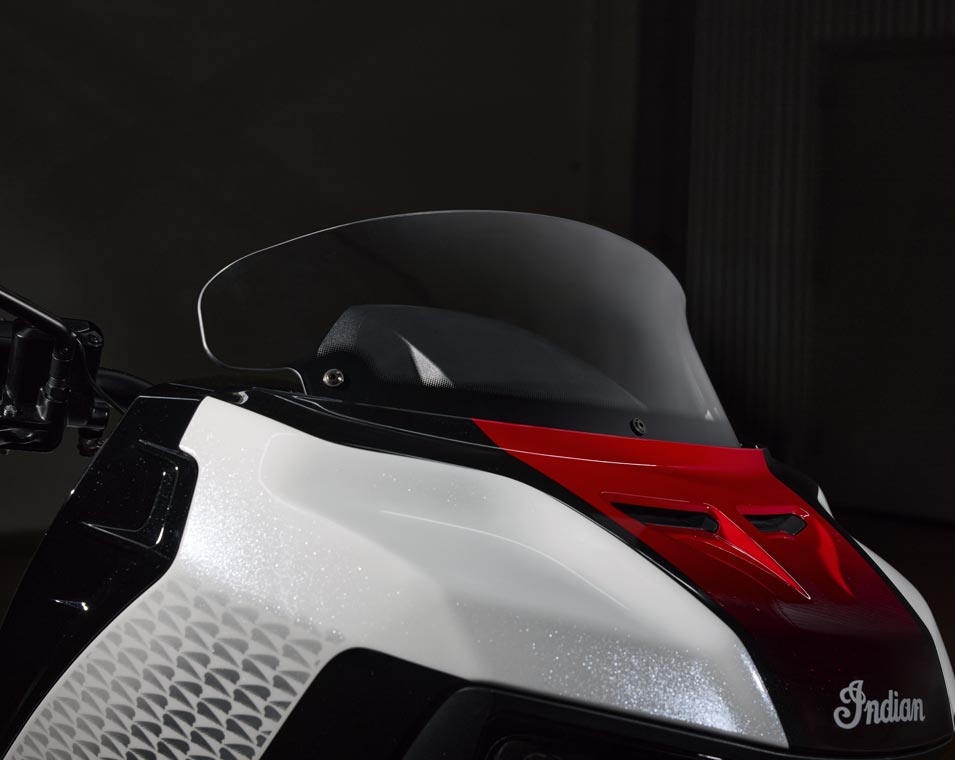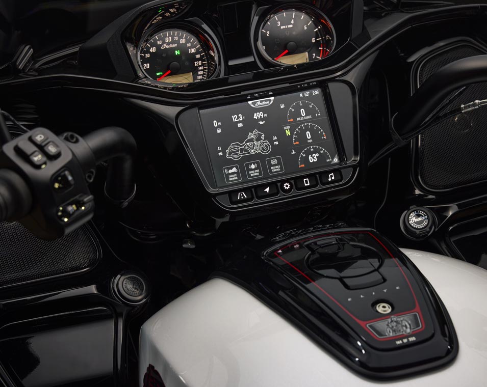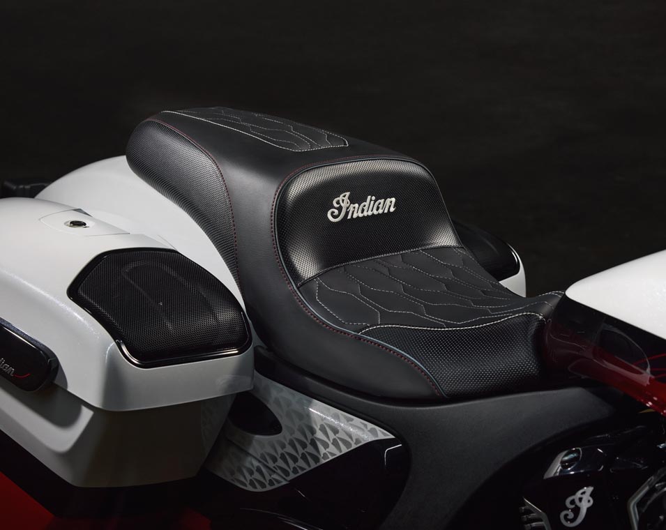 | Standard Equipment | Remote Locking Hard Saddlebags, Power Adjustable Windshield, 68+ Liters of Storage, Keyless Ignition, Adjustable Fairing Vents, USB Charger, Tire Pressure Monitoring System (TPMS), Headress Floorboards for Rider and Passenger, Titanium Color-Matched Stitched Seat, Tinted Flare™ Windscreen, Backlit Switch Cubes |